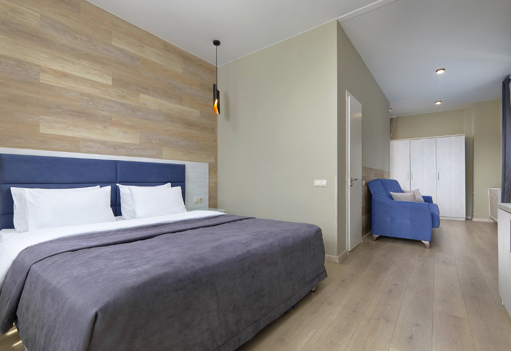 Площадь номера - 23 кв.м. 1 комната. 2 осн. места. Вид на парк.. В номере: телевизор; кондиционер; телефон; фен; набор посуды; сейф; туалетные принадлежности; 2-спальная кровать; тумбочки; зеркало; стол; вешалка для одежды; мини-холодильник; чайник; душевая кабина; стулья; шкаф; санузел. 2 доп. места: