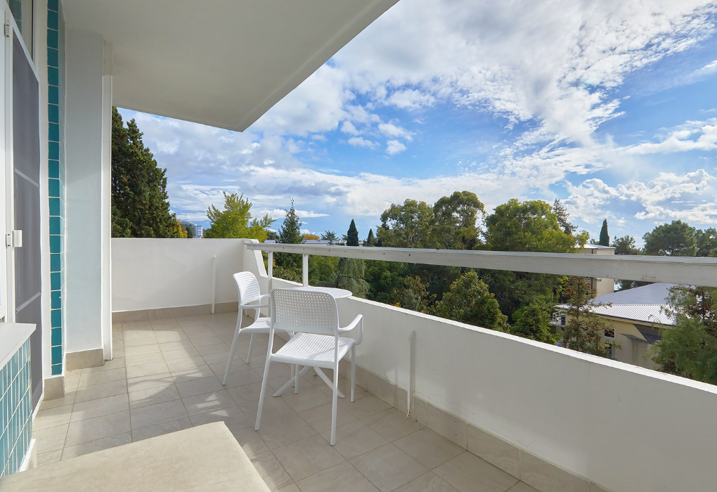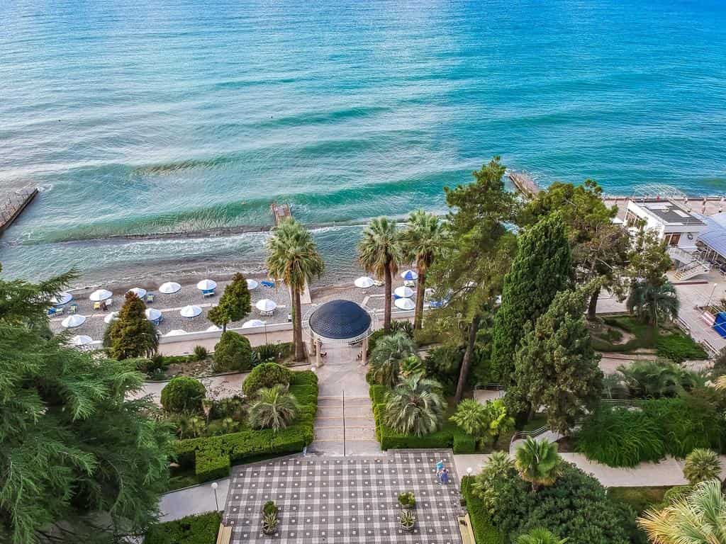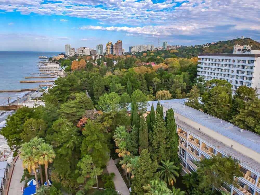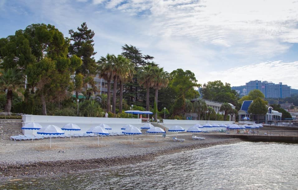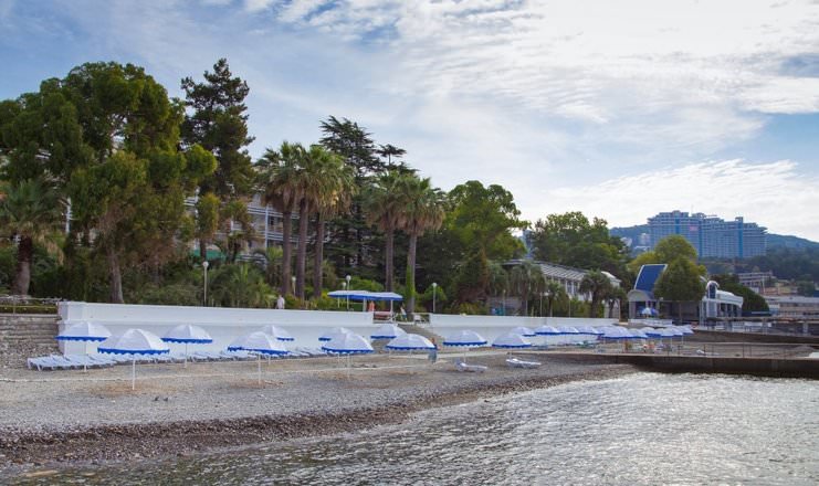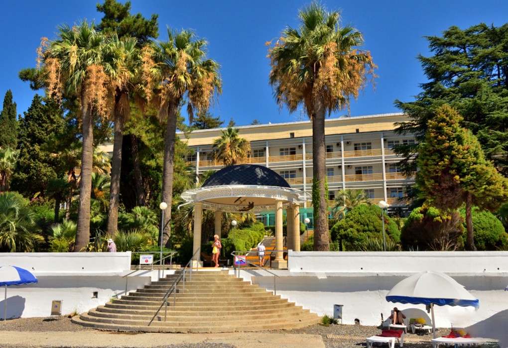 Санаторий «им. М.В. Фрунзе» расположился в центре Сочи вблизи Черного моря. В пешей доступности от него находятся парк «Дендрарий», сад-музей «Дерево дружбы», стадион, парусный центр и цирк.
