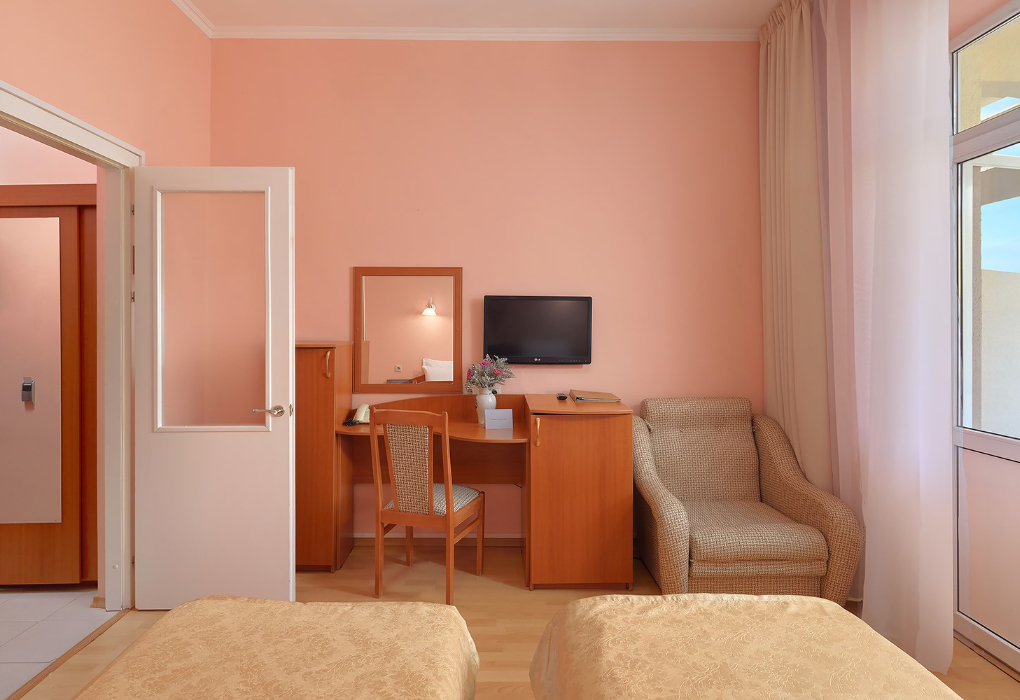 Здравница состоит из 2 спальных, лечебного и клубного корпусов, столовой, крытого плавательного бассейна с пресной водой, тренажерного зала, банного комплекса. На территории есть игровая площадка для юных гостей. Питание предусмотрено 3-разовое «Шведский стол»: в меню представлены разнообразные блюда.